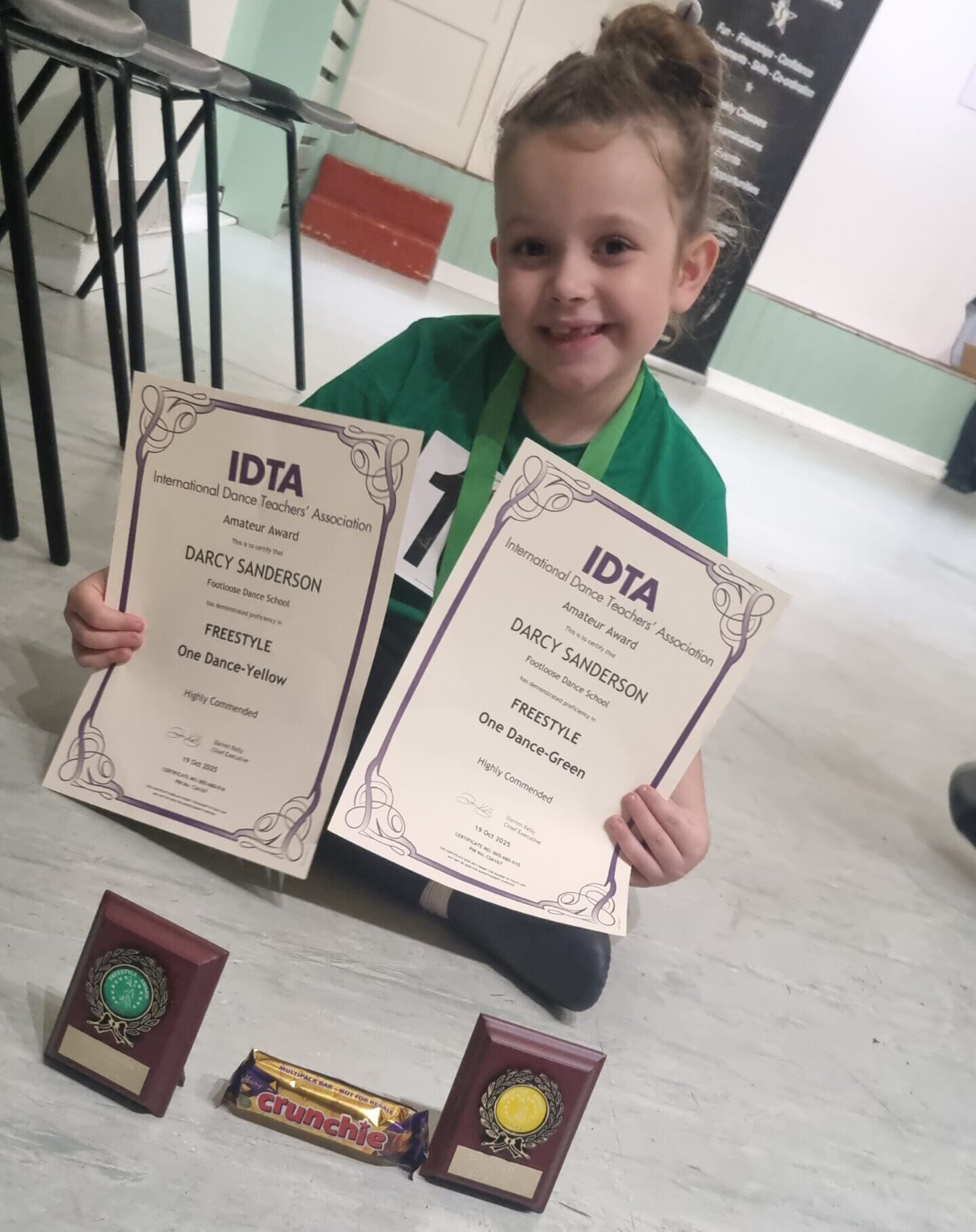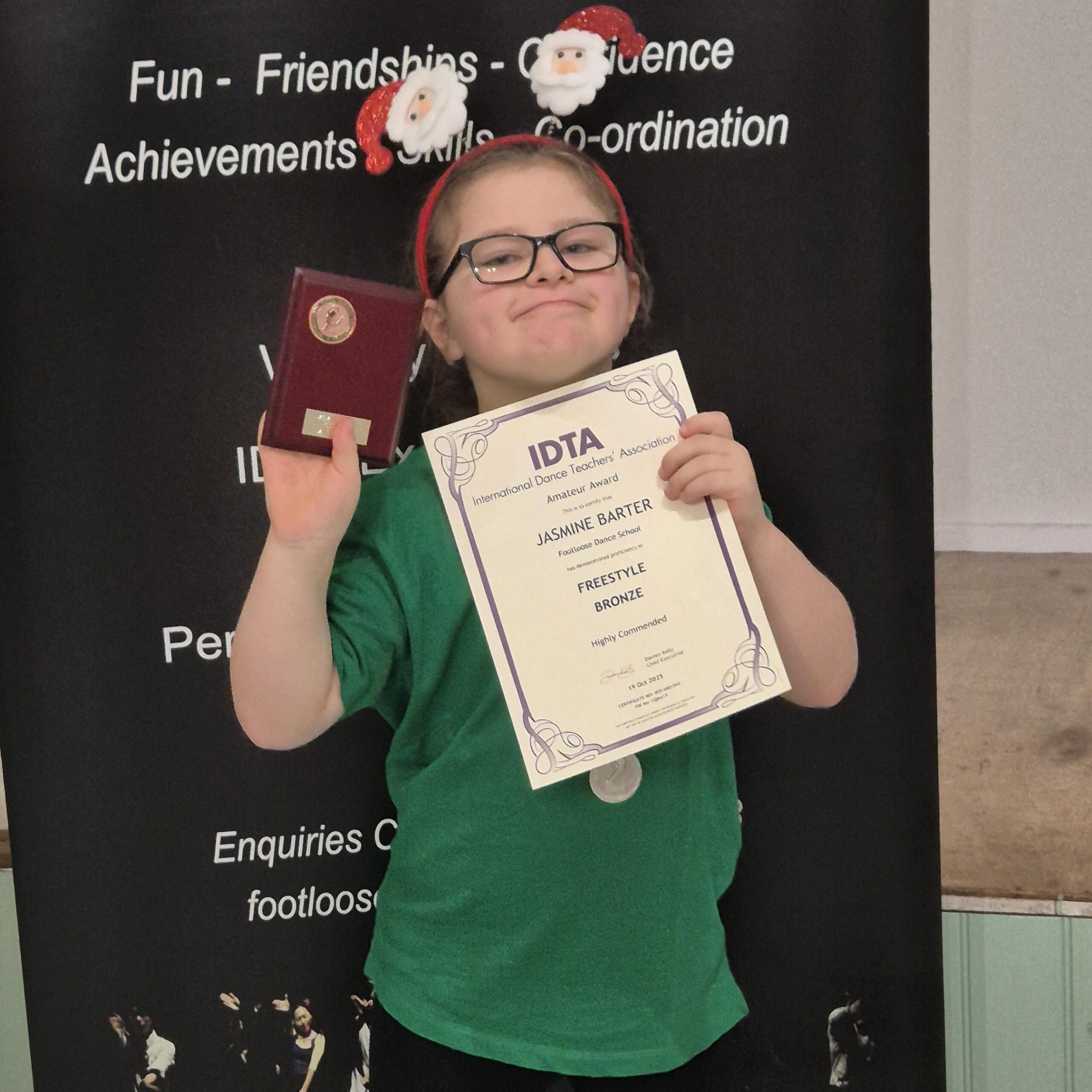 Darcy received two awards on Sunday evening at her first dance presentation from her dancing group Footloose. She received these awards for passing her two dance examinations at a highly commended level.