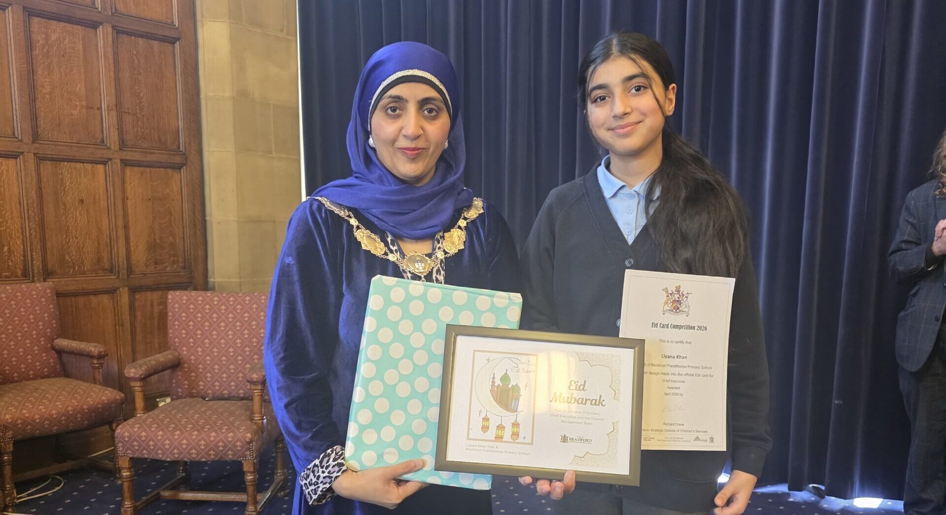 A huge congratulations to Liyana, who won Bradford Councll‘s Eid Card Competition – taking first place in the main category and designing the official Eid card for the Chief Executive Officer of Bradford Council. What an incredible achievement!